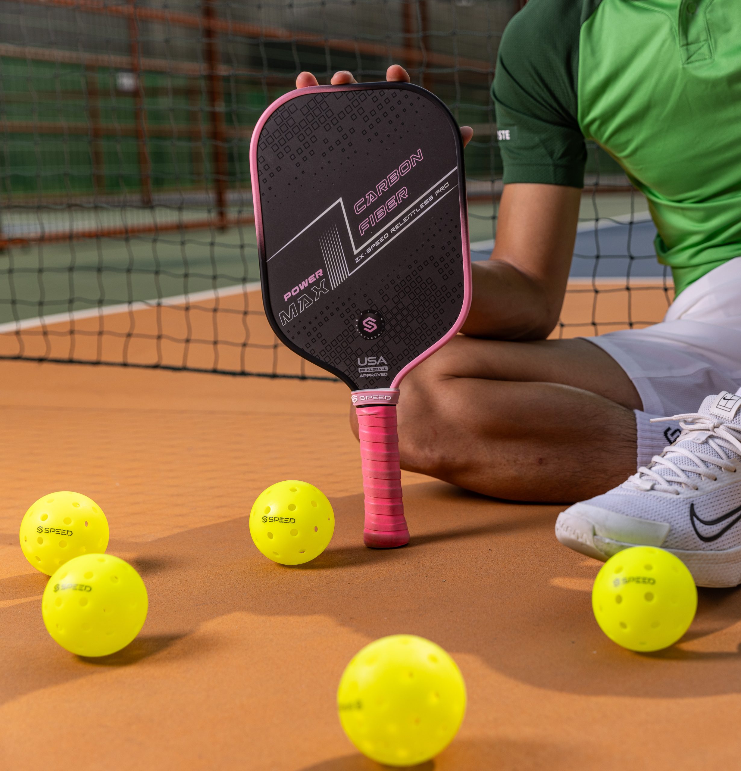 Mặt vợt Carbon Abrasion tăng khả năng kiểm soát bóng và tạo độ xoáy cao.